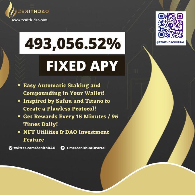ZenithDAO is how the first auto-staking Blockchain Protocol works. Users can earn py with binance smart chain blockchain.it, introduces the most advanced features for the community to Bet You, Reward & Get Daily High APY On binance Smart Chain Network. They have built their own platform where users can hold you,r tokens with continued sustainability & Get High Rewards For holding Tokens. Here Mentioned Official Website Where You Can Find More Details About ZenithDao This makes investors very reliable to bet, earn tokens with auto bet feature.